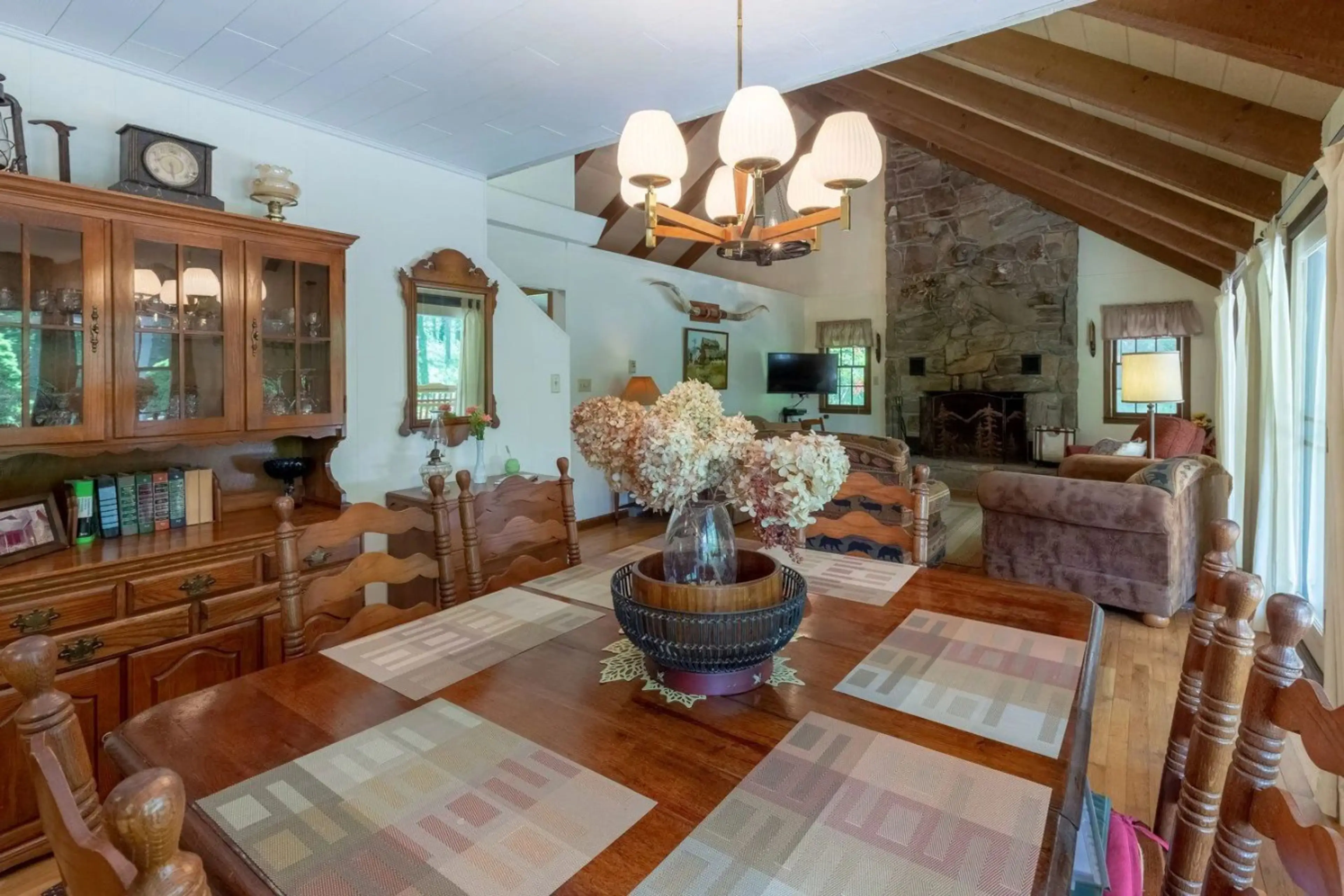 Gift yourself a well-deserved getaway at this 3-bedroom, 2-bath vacation rental, set in a forested cove with hiking trails, a hand-crafted Cherokee Indian fireplace, a private upstairs en-suite with a balcony, a community rec room, and so much more. Close to Harrah’s Casino and Great Smoky Mountains...